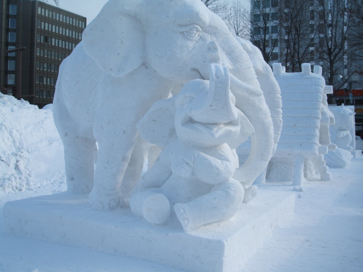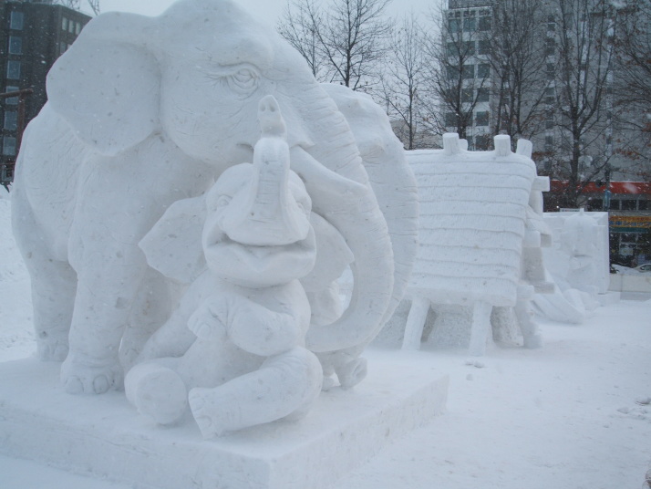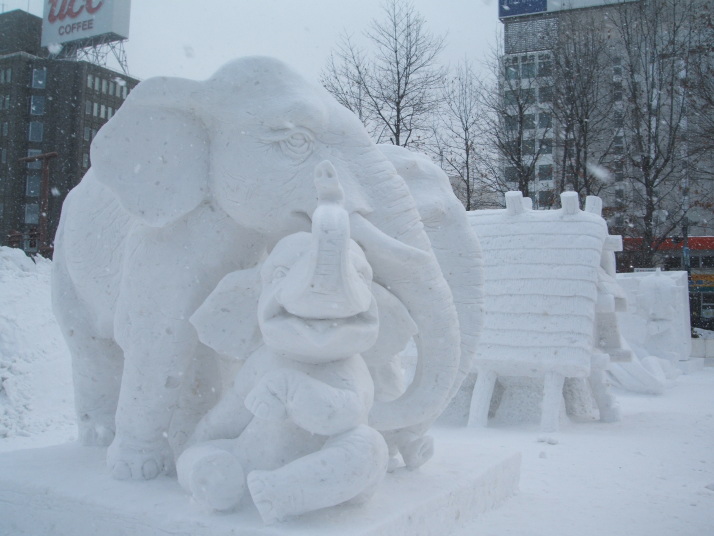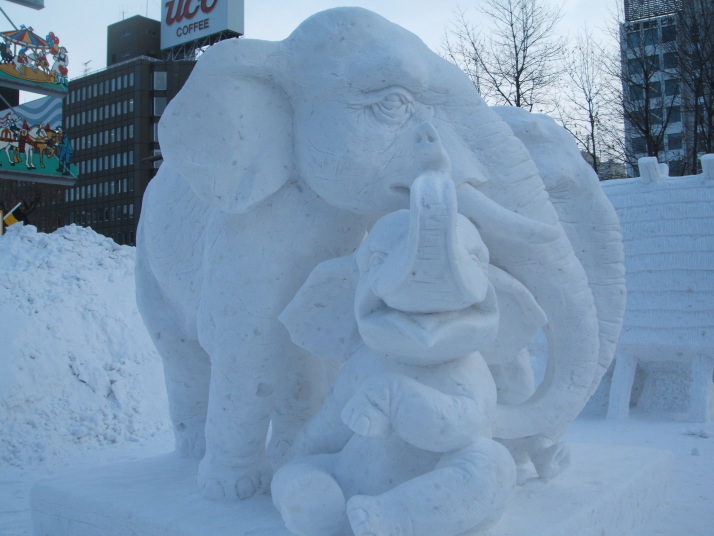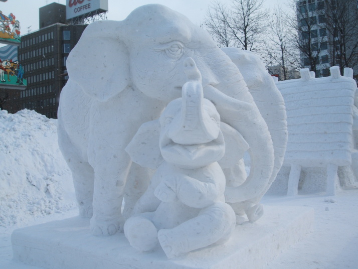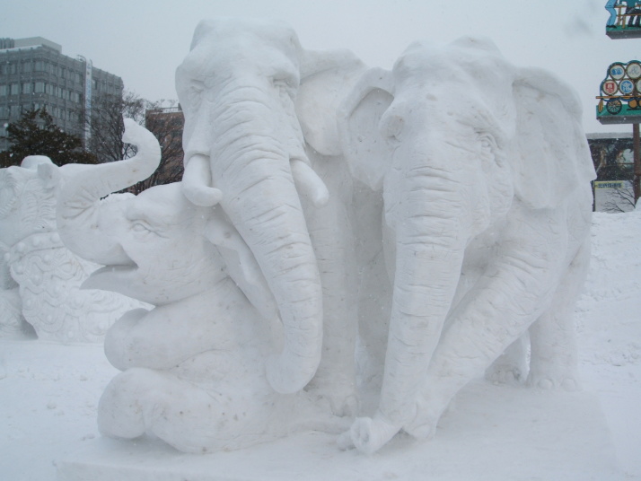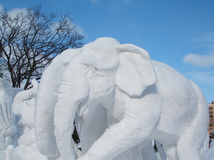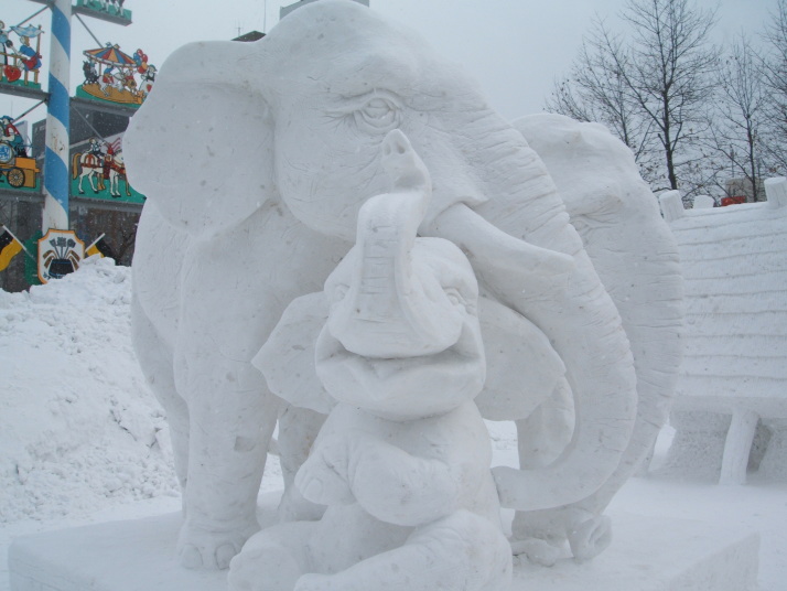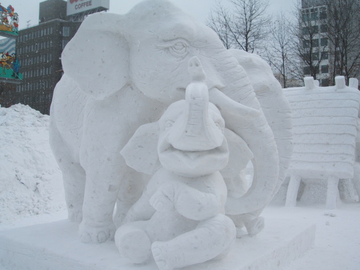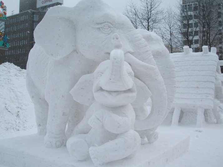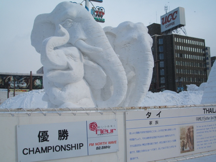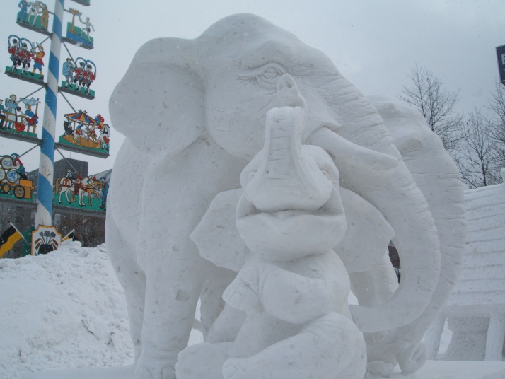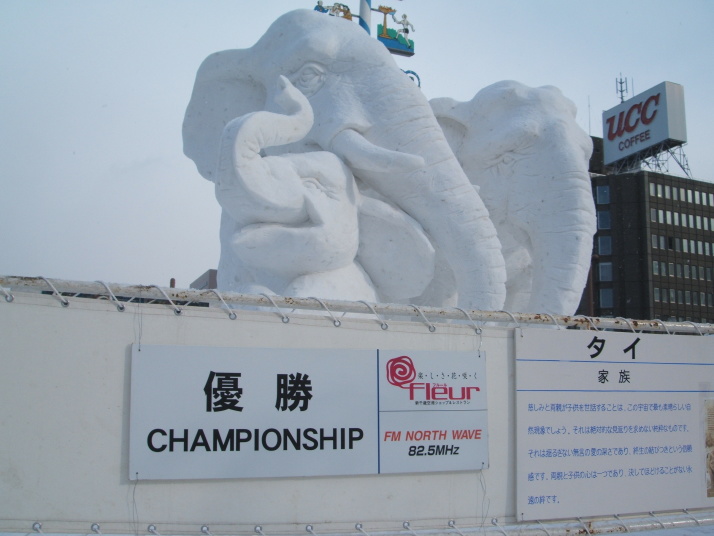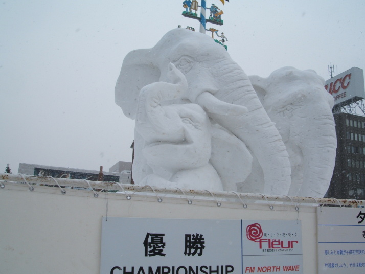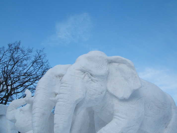 雪で作られたゾウの表情が豊かだったところが審査員に評価され見事優勝になりました。