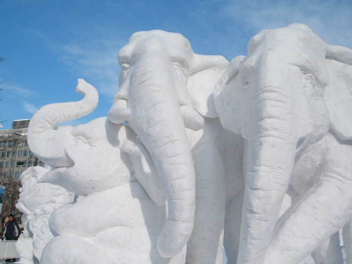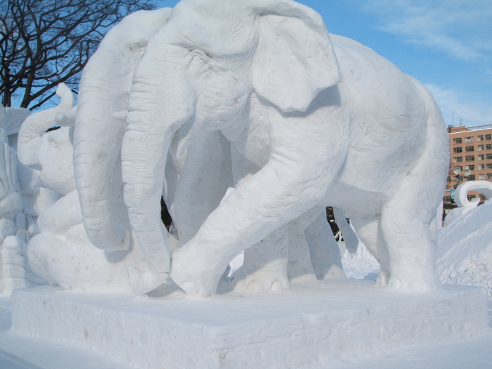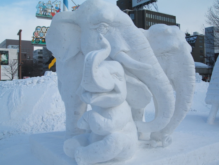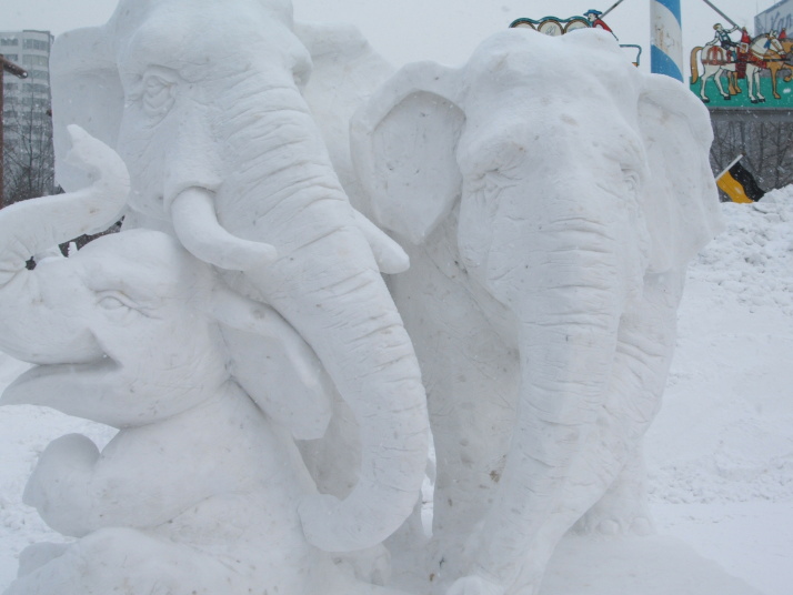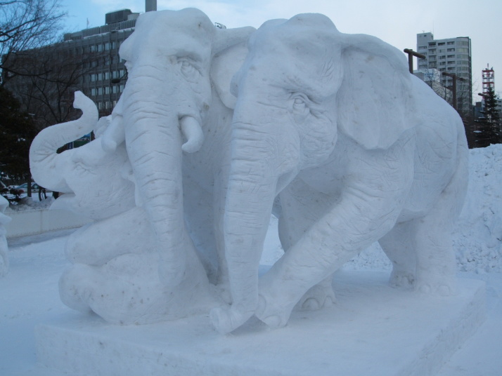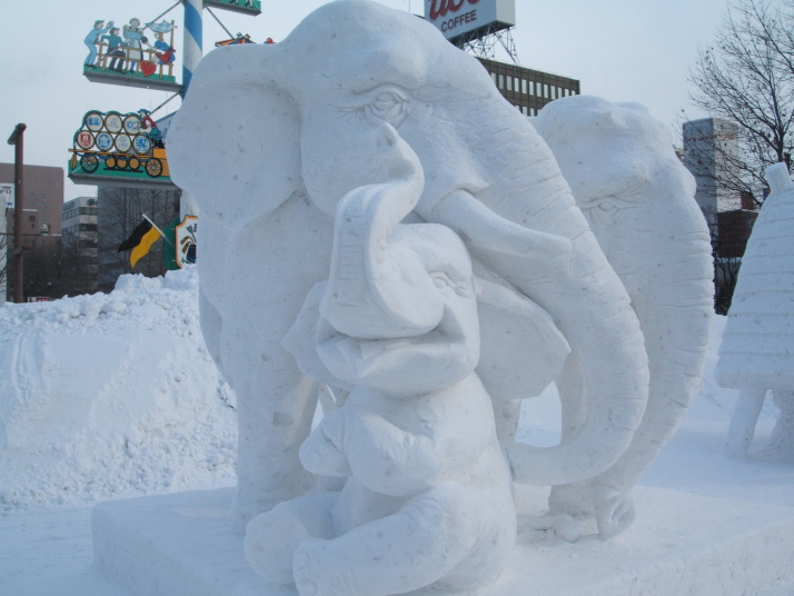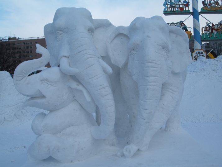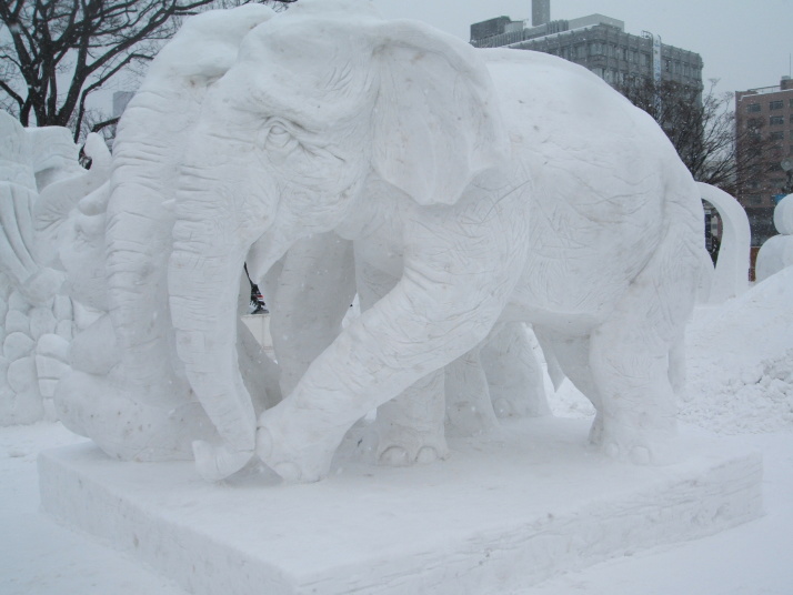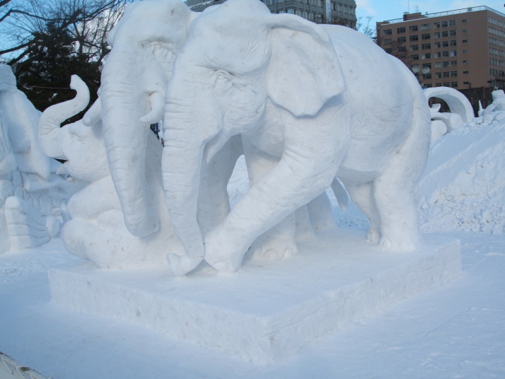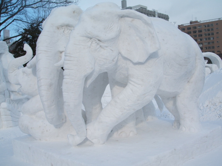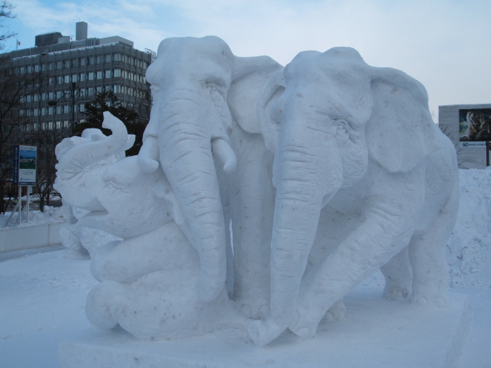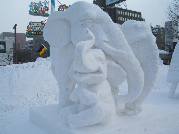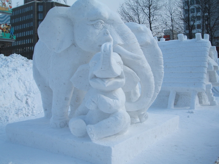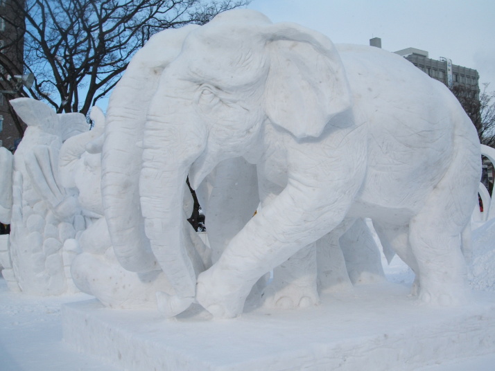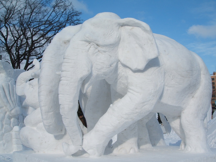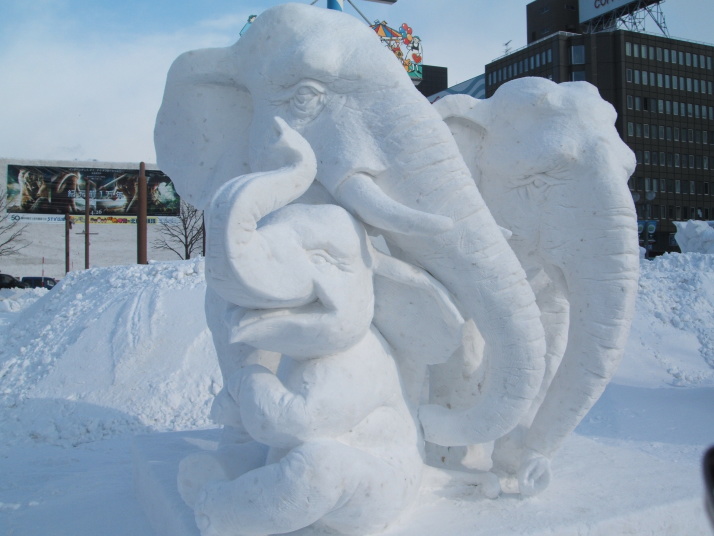 雪で作られたゾウの表情が豊かだったところが審査員に評価され見事優勝になりました。