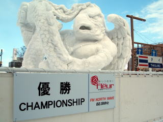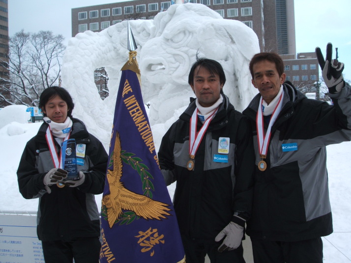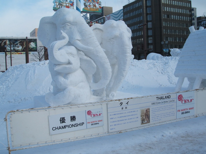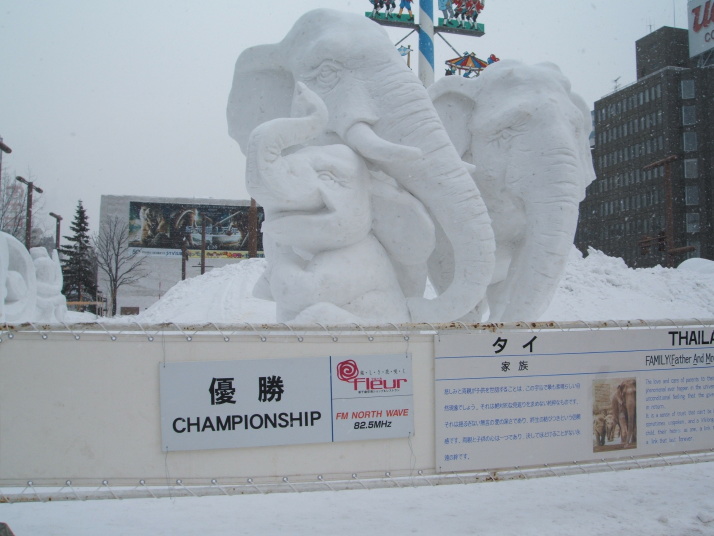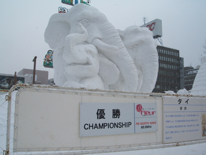 コンクールの結果はタイチームが優勝しました。雪像のタイトルは「家族」です。