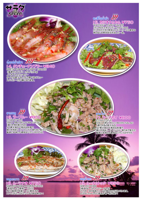 | Menu 写真をクリックすると拡大します。 คลิกที่รูป รูปจะขยายใหญ่ขึ้น |