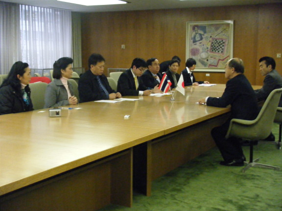平成21年12月21日-24日まで、タイ王国下院議員予算監視委員会が北海道を訪問しました。この訪問団は議員5名と職員4名が同行しました。21日は、北海道庁を表敬訪問し、山本副知事と意見交換をしました。山本副知事はタイでの北海道のプロモーション活動について、両国はとても良い協力関係にあるということを話されました。また、北海道とタイの関係は、近年観光においても深まっており、より互いの観光客も増加することが見込まれるだろうということで、タイと北海道の直行便の要請についても話は及びました。 24日は函館市を訪れ、函館市の谷澤副市長を表敬訪問しました。その後、函館の予算について説明を受け、タイで役立てるため訪問団は積極的に質問をし、活発に意見交換をしました。