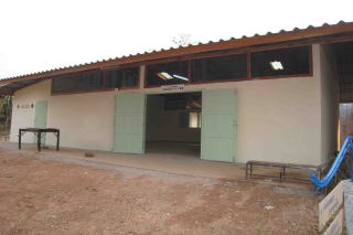 小さな門を入った学校は校長、職員室の棟、4教室ある棟が二つ、食堂のような棟、それに台所用の棟がある。今回寄贈した図書館はその間に立派に建っていた。当初日本に送られて来た図面の図書館とはずいぶん違って思っていた以上に大きいのだ。