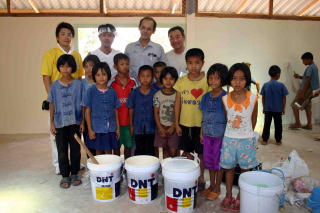 10年前、札幌の塗装組合青年部会は10周年の記念式典や記念誌の発行をやめ、その予算でタイの貧しい農村の小さな学校に図書館を寄贈し、メンバー自らが現地に赴き自分たちの手で寄贈した図書館に仕上塗装をする「国際協力ボランティア事業」を行った。