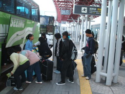 | 1. JICA札幌からスタッフを乗せて、 千歳空港へ向かう。 (バス提供:青年海外協力隊北海道OB会) |