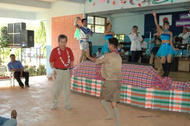 家事のほとんどをこなす子供達にやらされていると言う感じはなく、当然のように炊事、洗濯、掃除をしている。そして食事が終わると、日本語を書きつづったノートを持った子供達数人に囲まれ、夜遅くまでの会話が続くのです。シャイであり照れ屋であり、そして積極的でもあり、そして何よりも明るい子供達、あの時見た写真の中の笑顔がそこにあるのです!!県庁、県議会、教育委員会、郡役場、警察所、そして病院関係者の方々も我々をとても温かく向かえ入れてくれました。タイと日本両国の国旗、「OKETO」と書かれた歓迎の横断幕、そしてお互いに握手を交わす。その様子はテレビで見る国際的な首脳会談の様ですらありました。